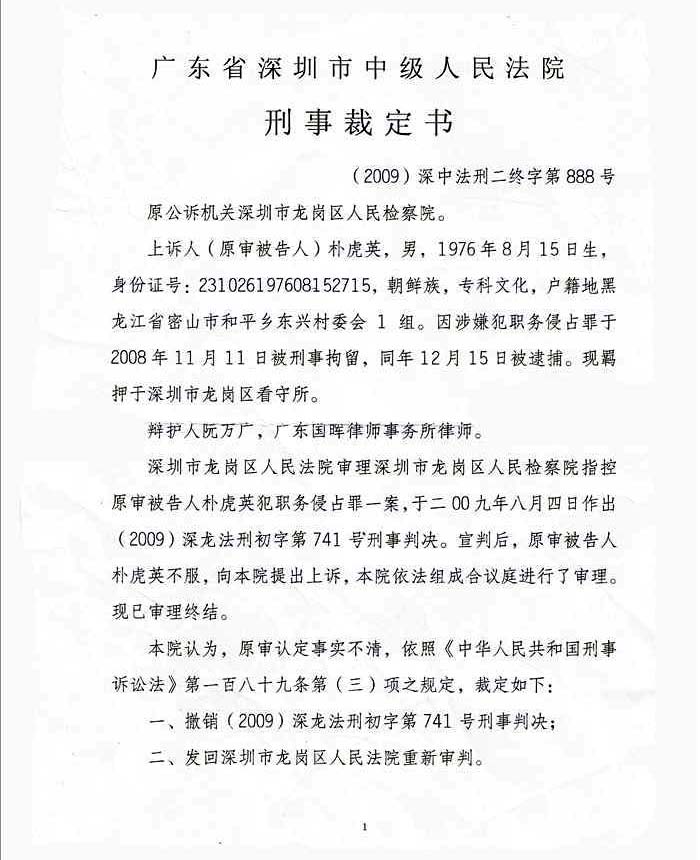 阮万广律师据提出朴虎英无罪、本案系民事纠纷的意见,二审采纳律师意见,将案件发回重审后,检察机关撤回起诉,作出朴虎英无罪的不起诉决定。
